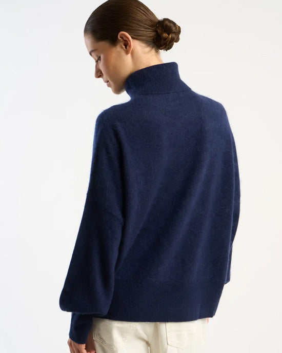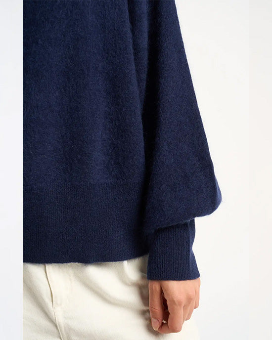 This brushed cashmere blend sweater is the perfect investment ahead of the new season. The Mareine rollneck in marine (navy) features voluminous long sleeves and a short oversized shape and is perfect for layering over jeans and skirts. Knitted with a brushed finish, the yarn creates a cloud-like effect that feels exceptionally light and soft against the skin.