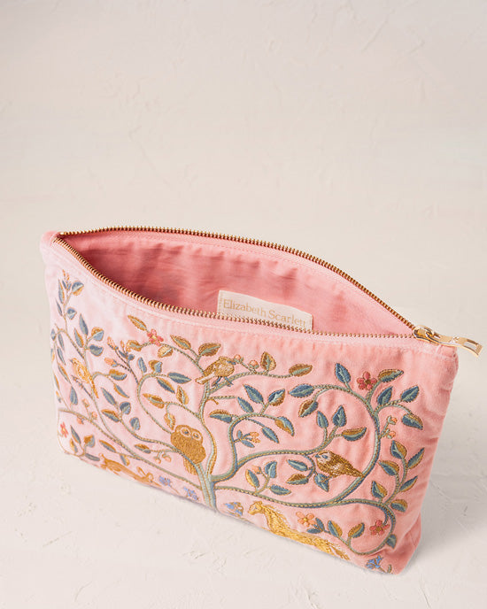 Tree of Life Velvet Everyday Pouch Blush Pink