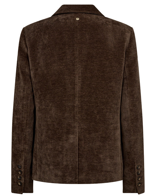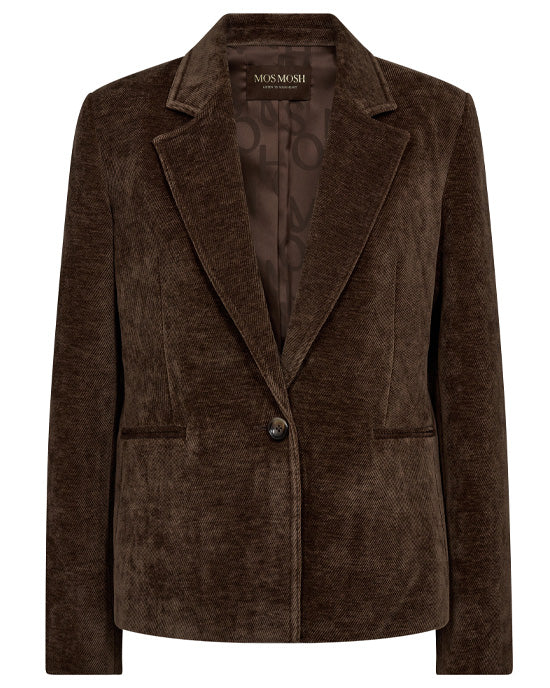 Tailored in a velvety-soft corduroy fabric, this brown blazer blends timeless style with modern comfort. Made from a stretch-infused blend of polyester and elastane, it features a single-breasted design with a single button fastening for a sleek, refined silhouette. Effortlessly chic, it’s the perfect layering piece for both casual and dressed-up looks.