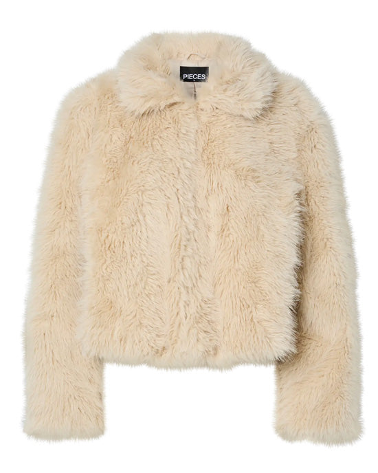 Wrap yourself in warmth with the Jilla jacket, a short, plush style crafted from luxuriously soft faux fur. Designed in a chic cream tone, it features a classic collar, discreet hook fastening, and practical inseam pockets. Fluffy, cozy, and effortlessly elegant—perfect for adding a touch of glamour to cold days.