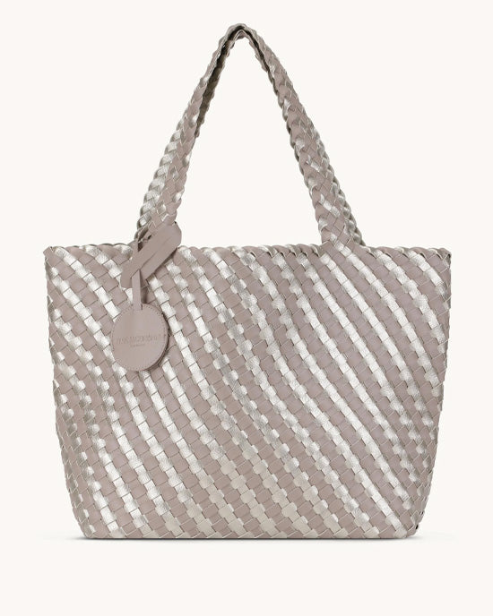 This reversible braided shopper is crafted from soft, braided faux leather and gives you two stylish looks in one bag. One side features a chic two-tone design, while the other offers a clean, solid color for a more minimal expression—perfect for switching up your style.
