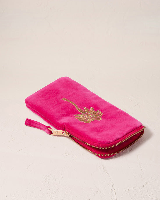 Gold Palm Pink Velvet Glasses Case