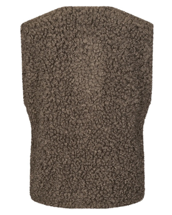 The Vada vest in dark mocha is a lovely new addition from Lollys Laundry. The soft and cosy teddy vest features a round neckline and front button closure. The pockets and edges are finished with tone-on-tone faux leather trims, adding an exclusive touch. It can also be styled over jackets for a cool layered look and extra warmth.