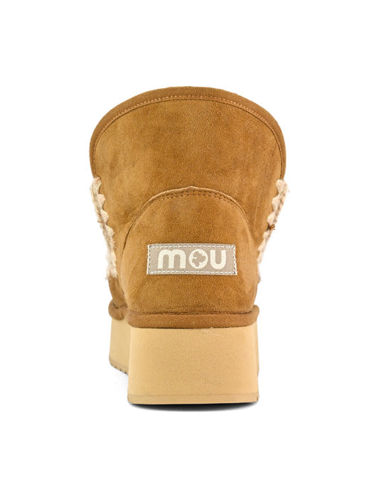 The MOU Mini Eskimo platform boot is expertly handcrafted in luxurious suede and double-face sheepskin with mou trademark hand-crochet wool stitching. This style is incredibly comfortable and hard-wearing with a rubber EVA sole.